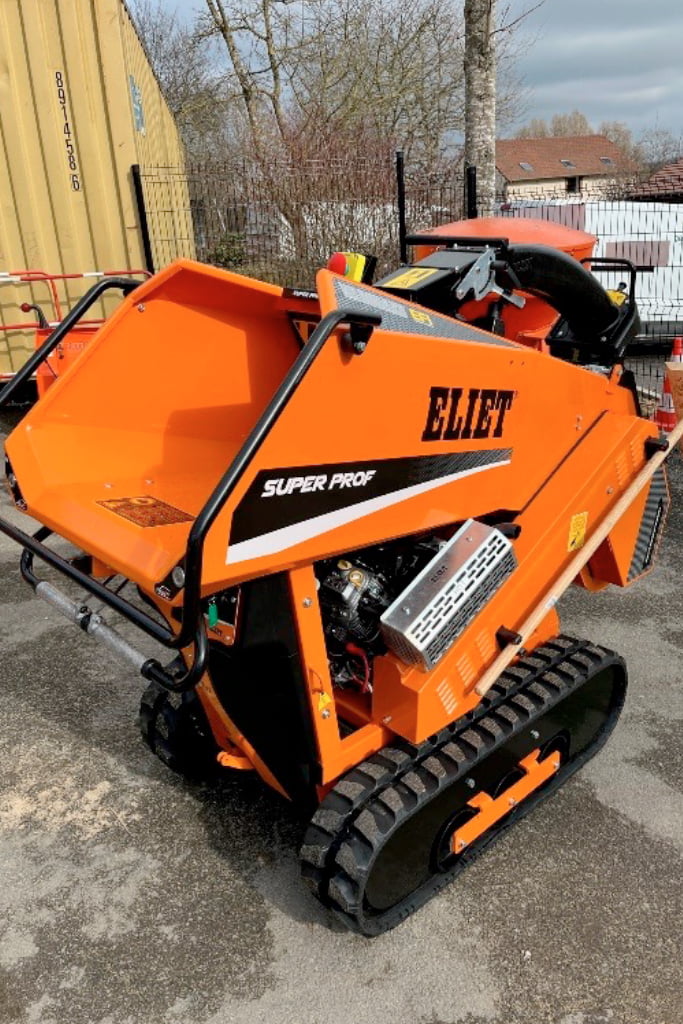 Ce type de broyeur sur roue est plus adapté au milieu urbain. Sa goulotte d’évacuation à 180°, permet un broyage propre et orienté.