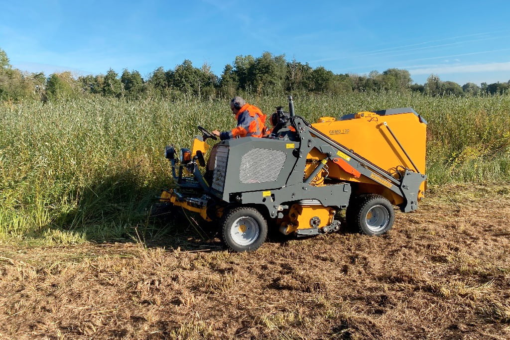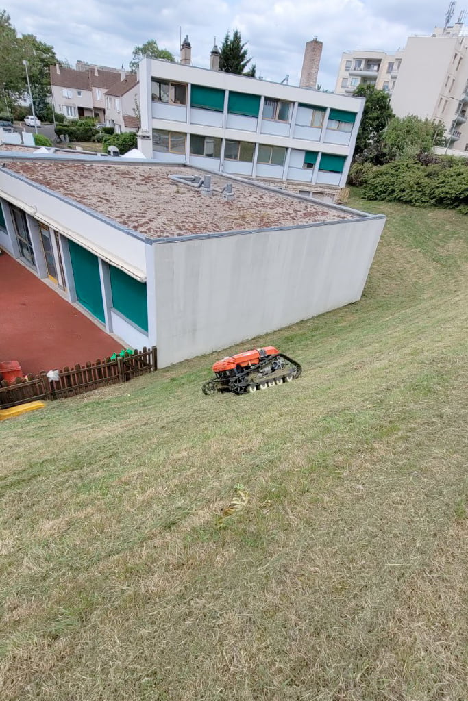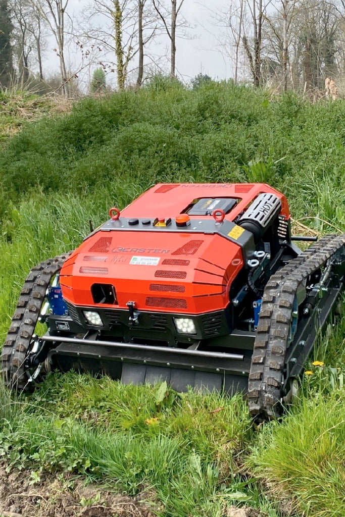 Nous possédons également des machines avec ramassage de petites et grandes tailles ainsi qu’un robot de pente télécommandé hybride sur chenille capable de travailler dans des pentes jusqu’à 55°