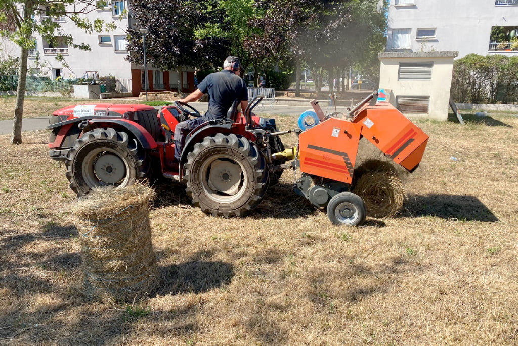 Prestation de mise en ballot de foin pour un de nos clients, la mise en ballots permet également à la société de fournir du foin à ses animaux pour l’éco-pâturage en période hivernale ou de sécheresse afin de pallier au manque d’herbe.
