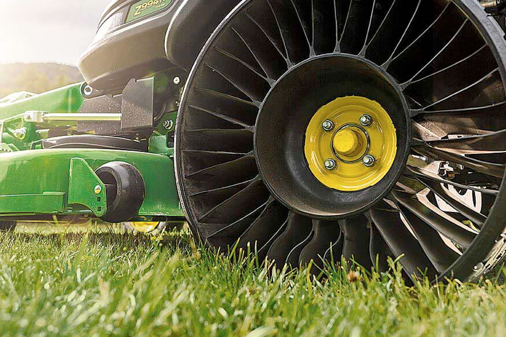 Pneu radial sans air X TWEEL TURF de MICHELIN plateau mulching ventrale,