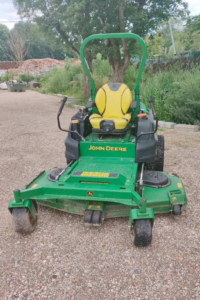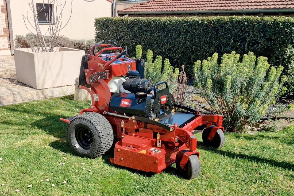 A rayon de braquage zéro et conducteur debout, plateau de tonte de 120cm en mulching.