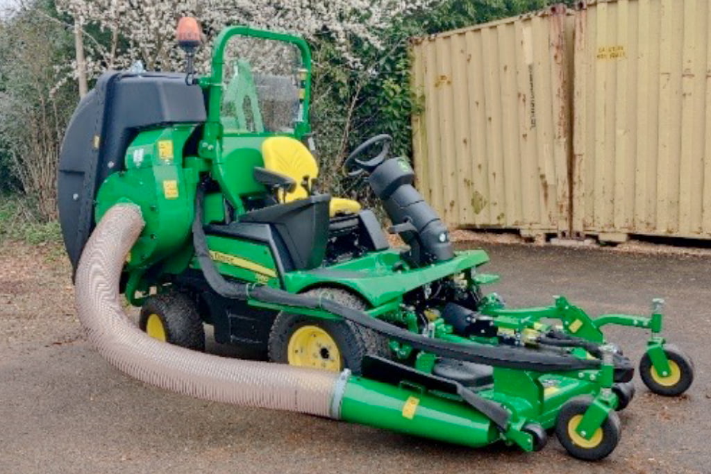 Plateau de tonte 150cm en ramassage. Cette tondeuse est également équipée d’un broyeur frontal mulching pour effectuer du broyage. Pour moyenne et grandes surfaces
